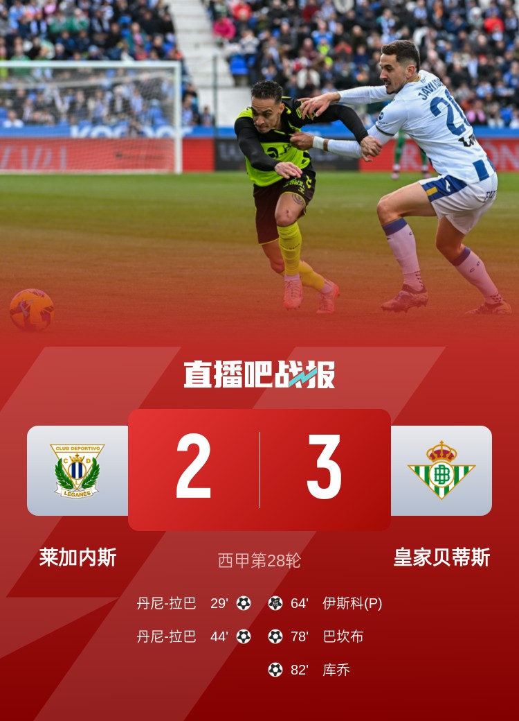 伊斯科點(diǎn)射,安東尼策動(dòng)絕殺,皇家貝蒂斯3-2逆轉(zhuǎn)萊加內(nèi)斯,西甲5連勝。
