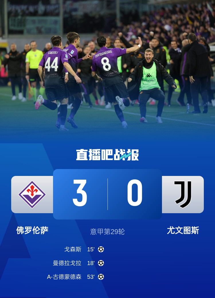 法喬利兩助攻,尤文0-3佛羅倫薩兩連敗,先賽距榜首9分。