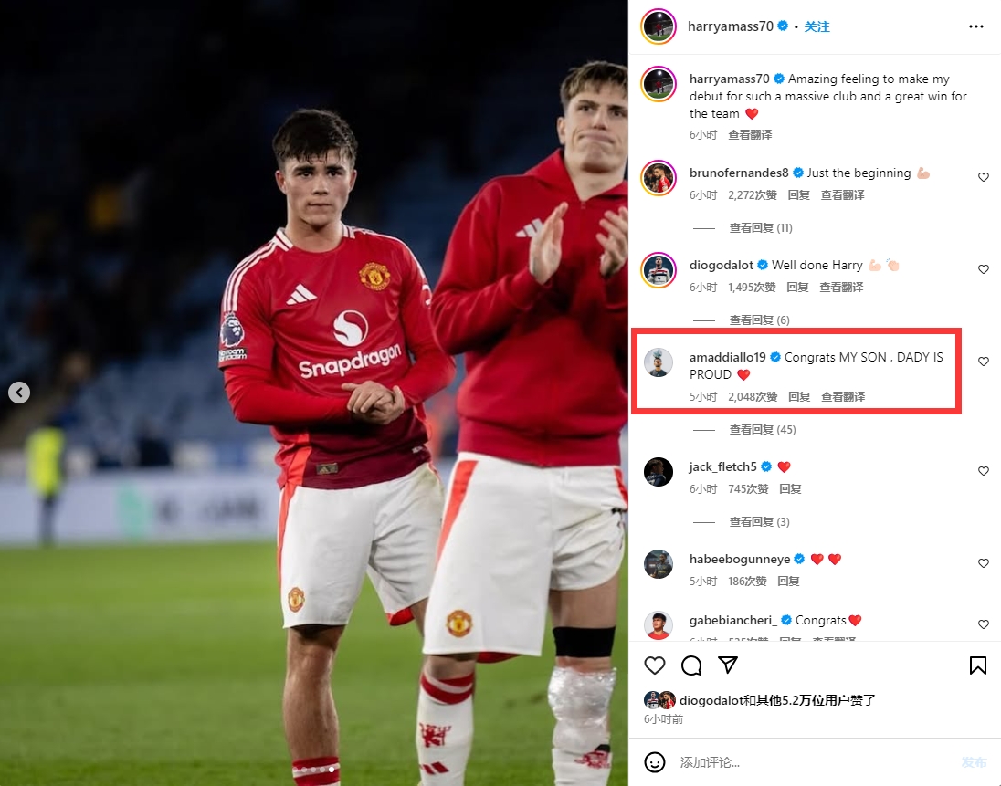 18歲阿瑪斯曼聯(lián)首秀,22歲阿瑪?shù)拢鹤YR我的兒子,爸爸很自豪??