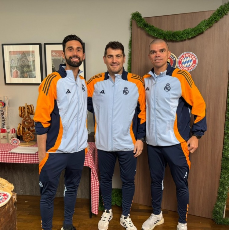 賽前,代表皇馬傳奇隊(duì)出戰(zhàn)的卡西、佩佩、阿韋羅亞合影留念,三人曾攜手幫助球隊(duì)拿到第10座歐冠冠軍。卡西現(xiàn)年43歲,出道于皇馬,2015年離隊(duì);佩佩現(xiàn)年42歲,2007年-2017年效力皇馬;阿韋羅亞現(xiàn)年42歲,出道于皇馬,并于2009年-2016年回到皇馬效力。