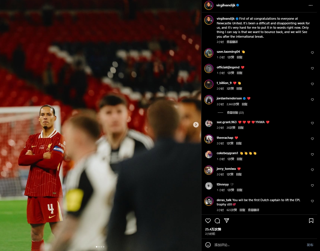 一周兩賽事出局!范迪克:5天輸2場世界沉沒,2周前還到處是陽光