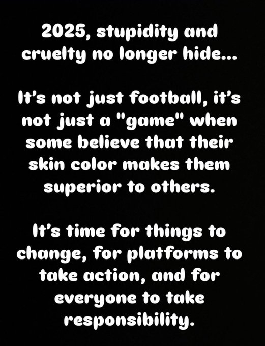 韋斯利-福法納寫道:“2025年,人們已經(jīng)毫不掩飾自己的愚蠢和殘忍。當(dāng)有人認(rèn)為他們僅憑膚色就比別人更優(yōu)越時,這不僅僅是足球的問題,這不僅僅是一個比賽的問題?!?/p>