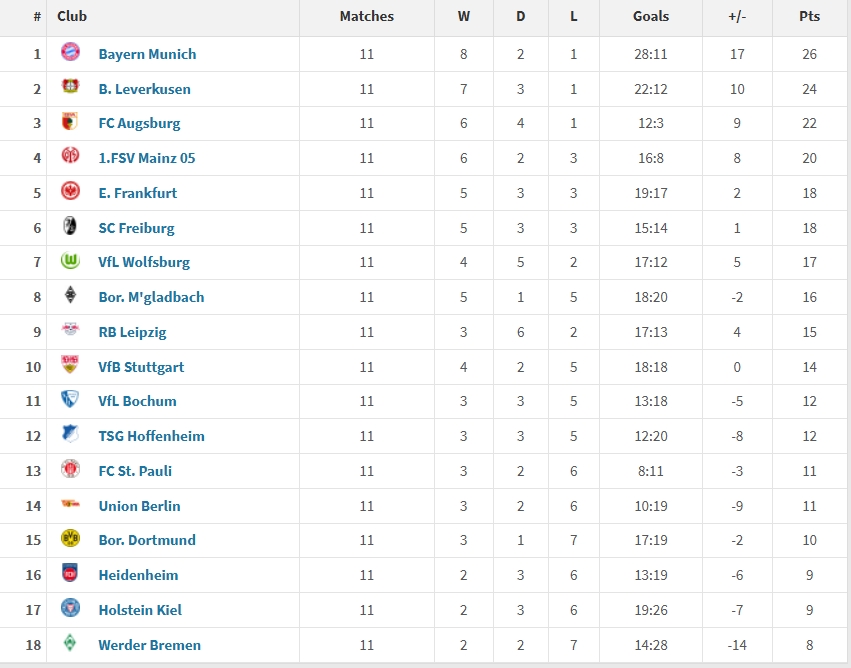 03月18日訊 2025年至今,德甲共進(jìn)行了11場比賽,其中拜仁拿到26分最高,其次是24分的勒沃庫森,而萊比錫、多特分別僅拿到了15分和10分。