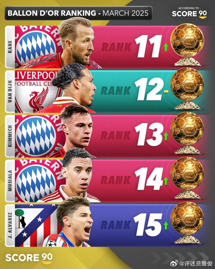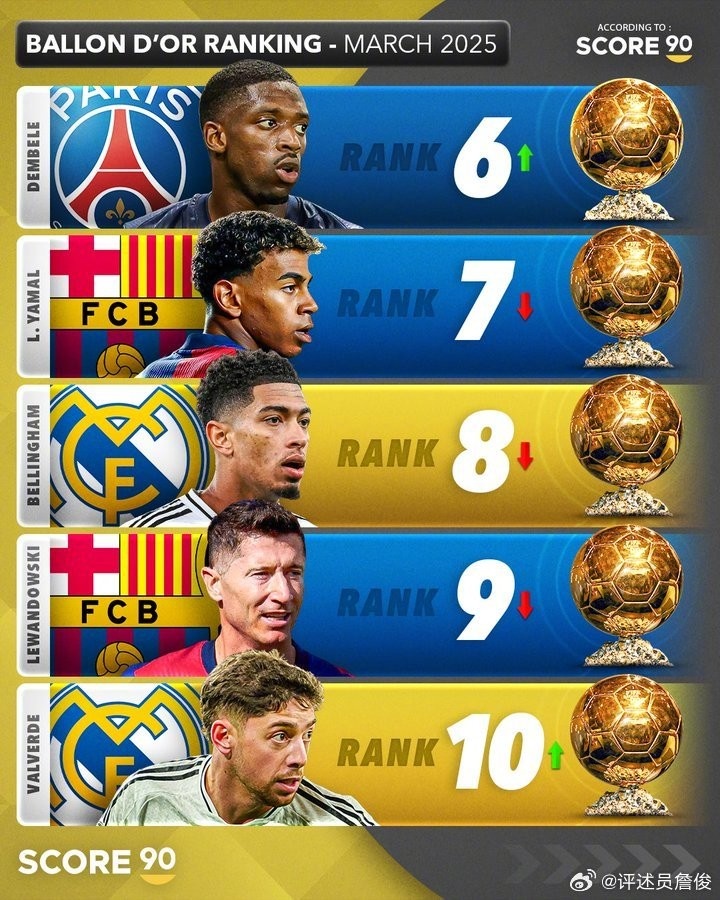 詹俊說:國外網(wǎng)站評分系統(tǒng)中2025年金球獎(jiǎng)熱門人選前十五名。本季已經(jīng)打進(jìn)30球迎來個(gè)人職業(yè)生涯巔峰的登貝萊,會(huì)不會(huì)是“黑馬”?如果大巴黎本季歐冠最終捧杯的話……