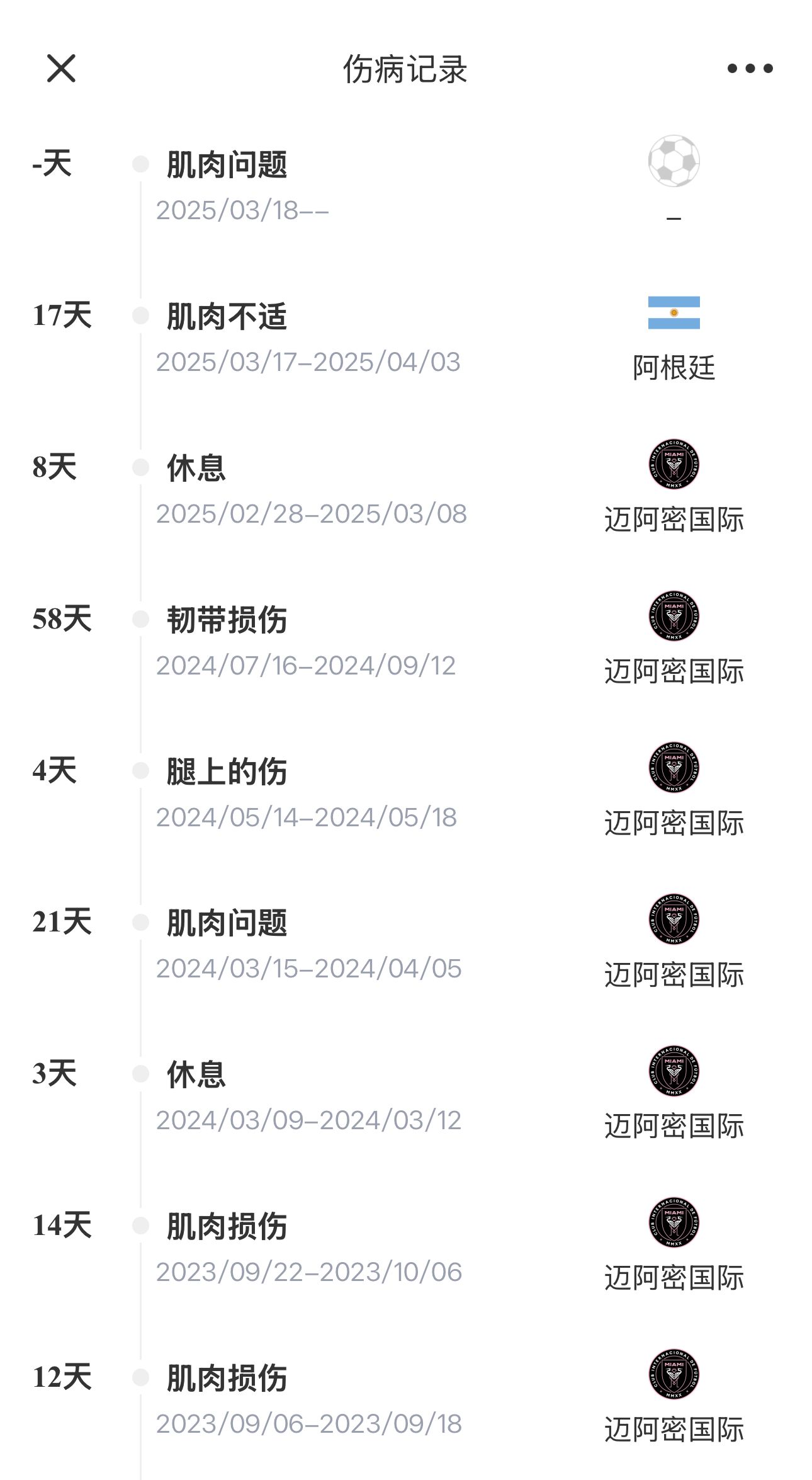 03月18日訊 阿根廷官方公布本期世預(yù)賽名單,37歲梅西因傷缺席,無緣對陣烏拉圭和巴西。邁阿密國際官方公布傷情,梅西內(nèi)收肌輕度損傷。